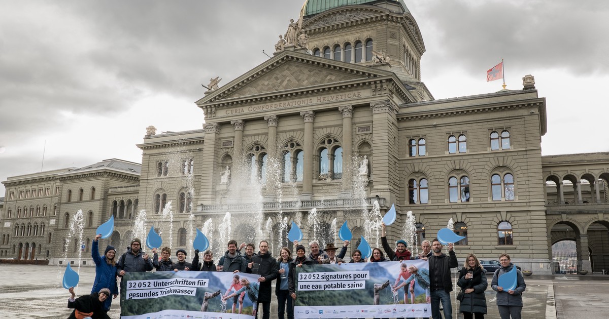 Il 30 marzo 2026 abbiamo raggiunto un traguardo importante: l’appello acque sane, firmato da più di 32’000 persone, è stato consegnato al Consiglio federale e al Parlamento. Grazie di cuore per il vostro sostegno!